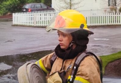Amanda Whitehead dressed in gear when she served as a volunteer firefighter in South Pierce Fire and Rescue. She was the only female volunteer firefighter in her squadron.