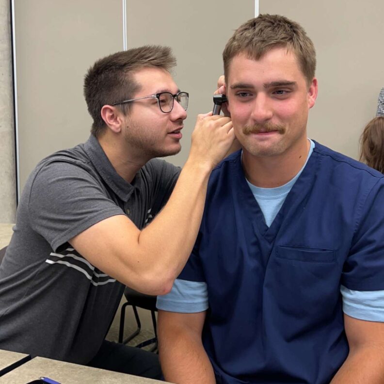 Todd (right) during an applied patient care lab earlier this year.
