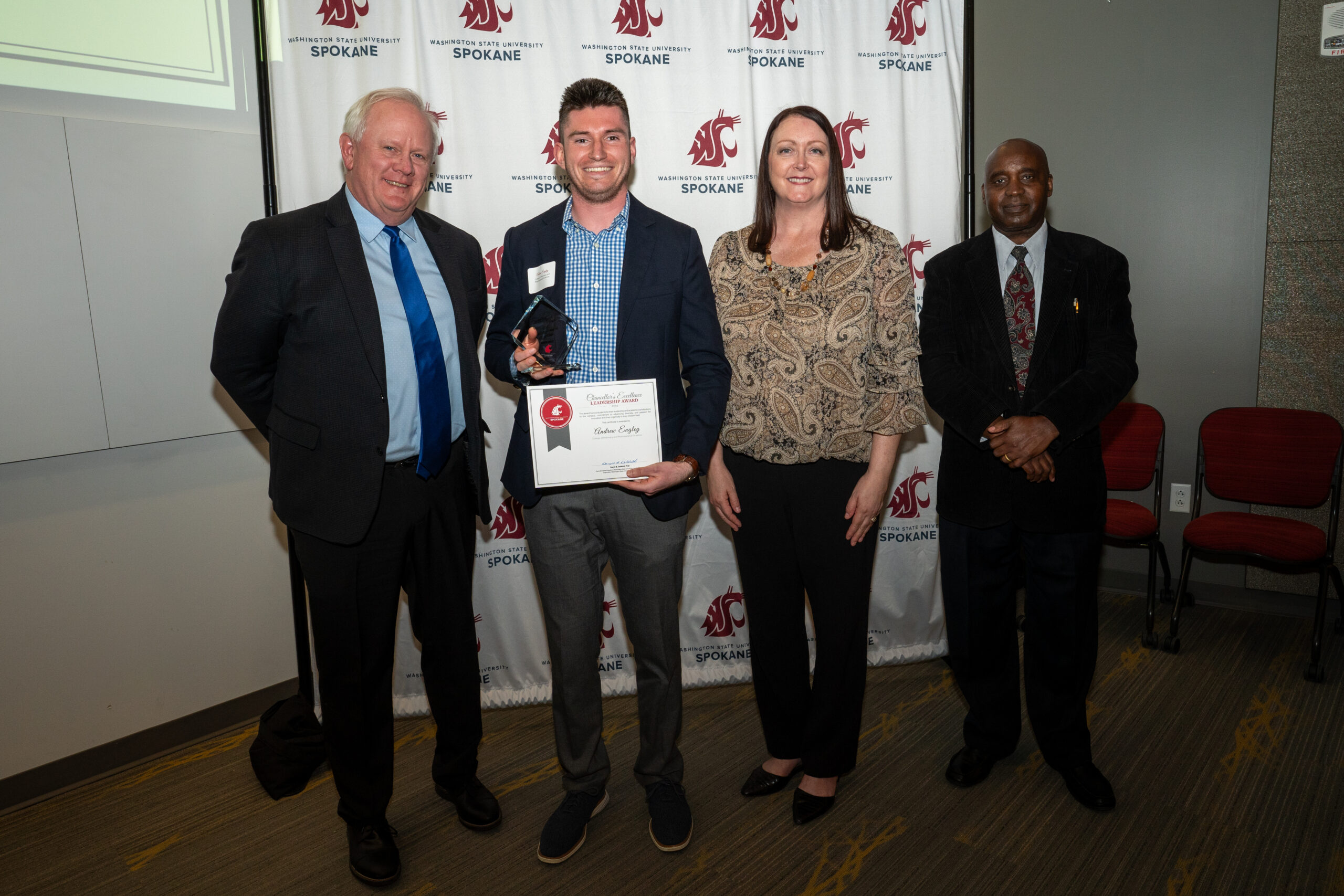 The Chancellor’s Excellence Awards are bestowed annually to students, faculty, staff and community partners who advance leadership and engagement at WSU Spokane. Recipients of these awards demonstrate exceptional leadership and service to the university and the community and/or support leadership development and engagement of WSU students.