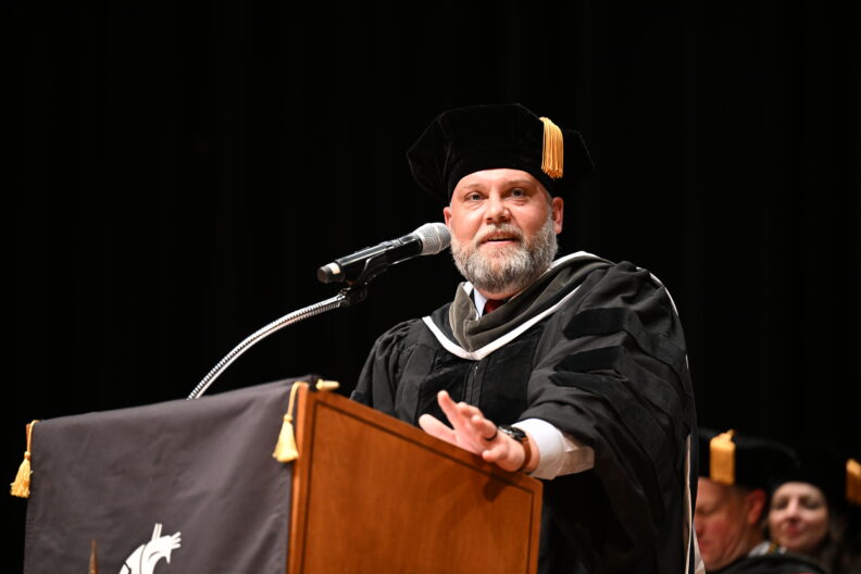 During the college’s graduate ceremony on May 6, keynote speaker Micah Cost, CEO of the Pharmacy Quality Alliance, reminded the class of their purpose and power: “Every patient deserves access to the high-quality care and medications that you will provide, the world craves strong and principled leaders like you to guide them through even the most uncertain times, and each of you has a unique voice and a story worth sharing.”